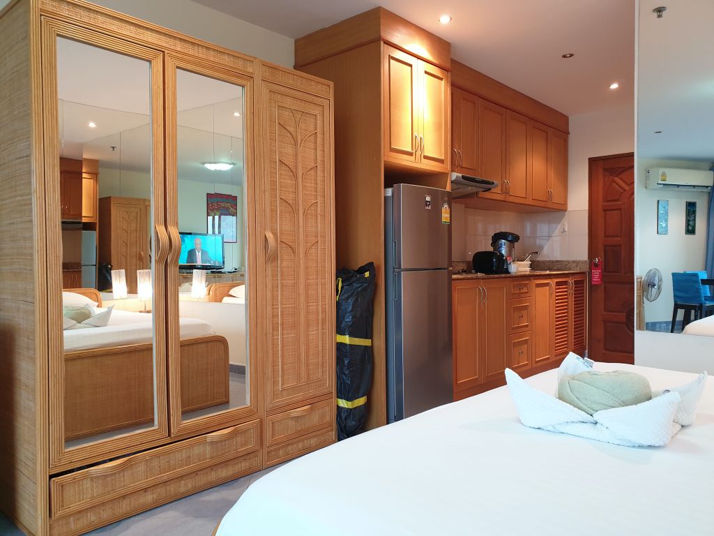37 Sq meter 15th floor Holiday Rental studio Condo for rent in View Talay 2 building A Jomtien. This room faces Pattaya which is called the cool side. king sized bed with a new expensive western mattress. This room offers you full wall mirrors on the side of the bed and the back of the bed. Large Smart TV  and CAT internet connection. Full walk in shower and new modern Kitchen.