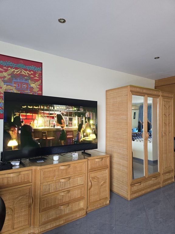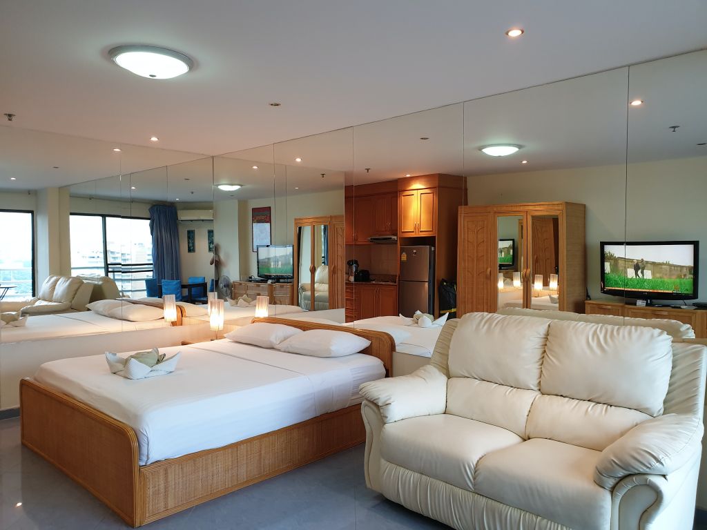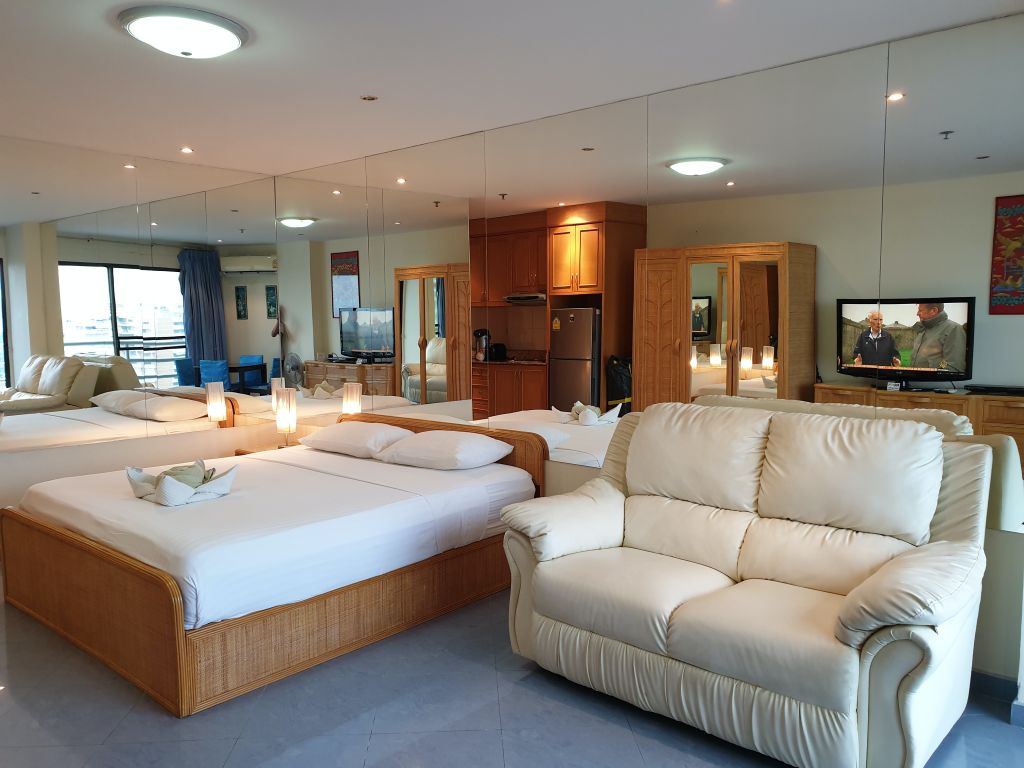 This room is loaded with mirrors for your viewing pleasure. Offers a king bed with a new very expenisve luxury western mattress. Samsung Smart TV  65″. ADSL internet with secure Wi-Fi, Balcony that is facing the cool side towards Pattaya on a high floor. In room safe and new Modern bathroom with a double sized walk in shower. Modern kitchen and so much more