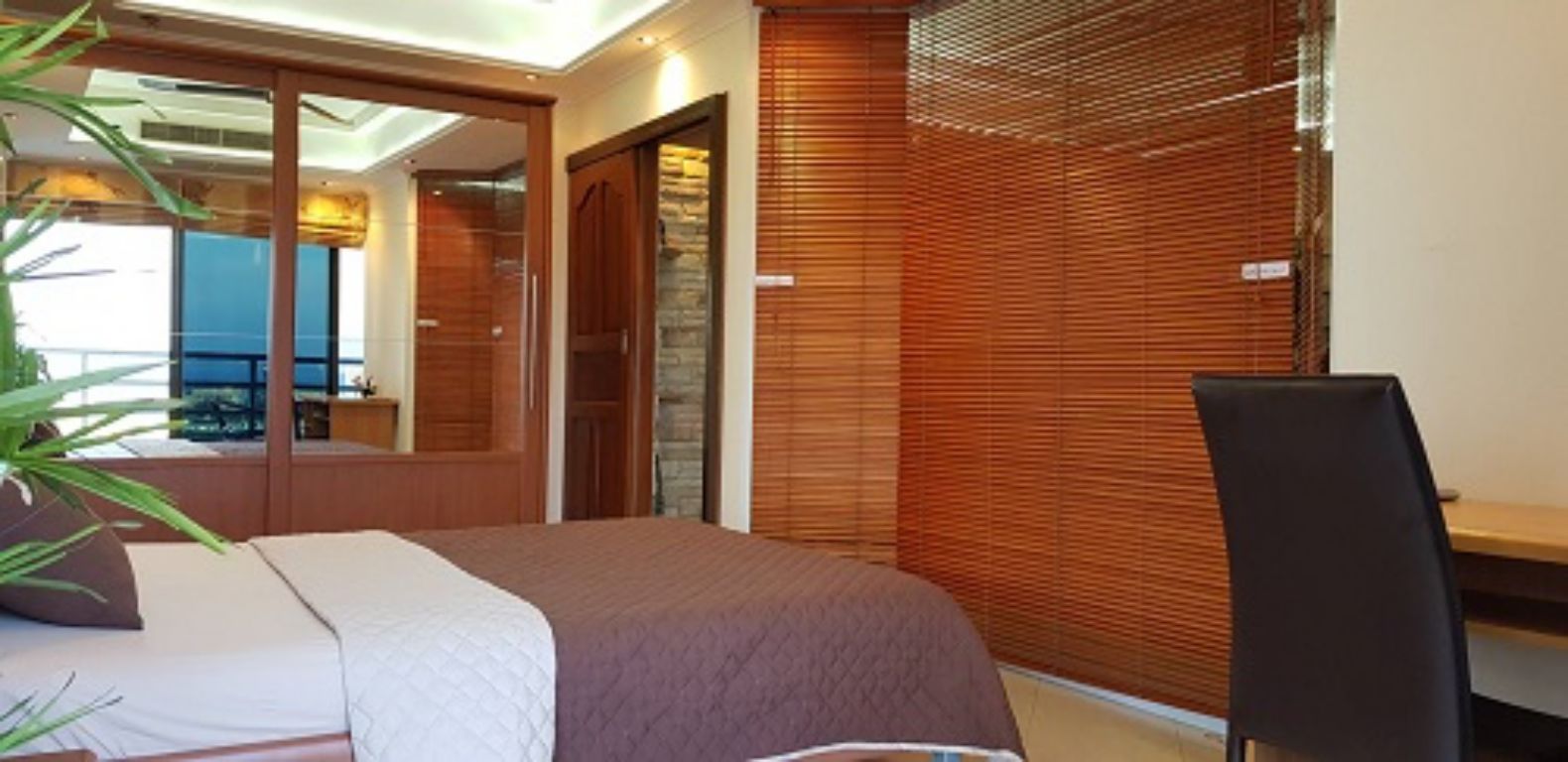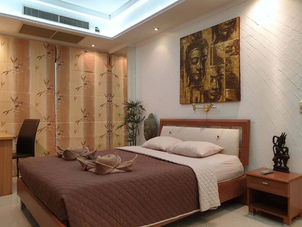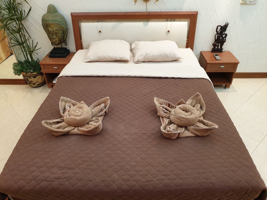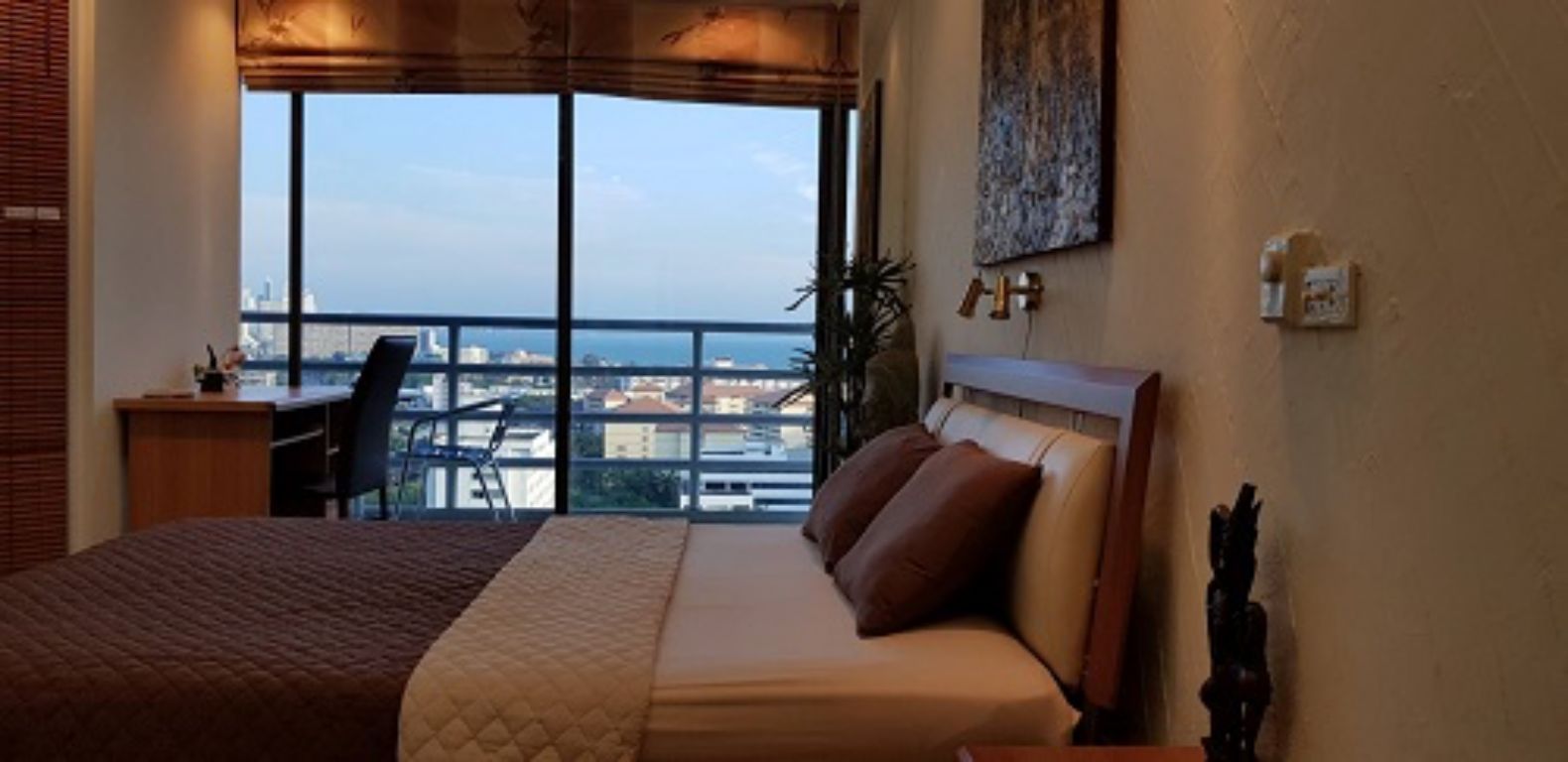 15th Floor One Bedroom Studio, 64 square meters with sea view. Hand made king bed with a western mattress, A nice sitting area with couch,