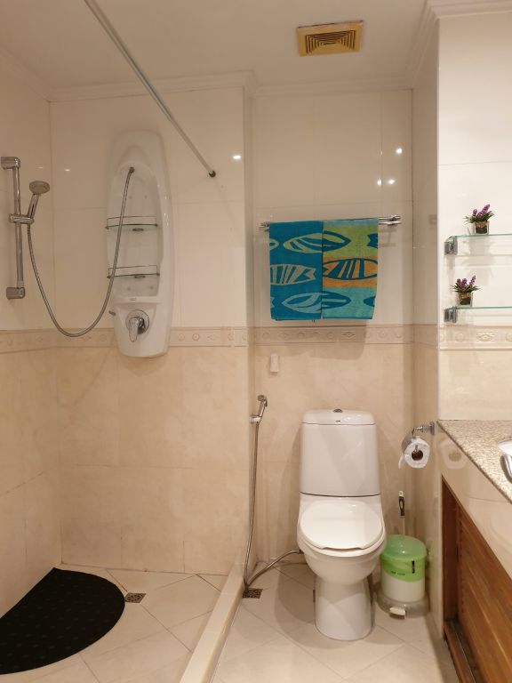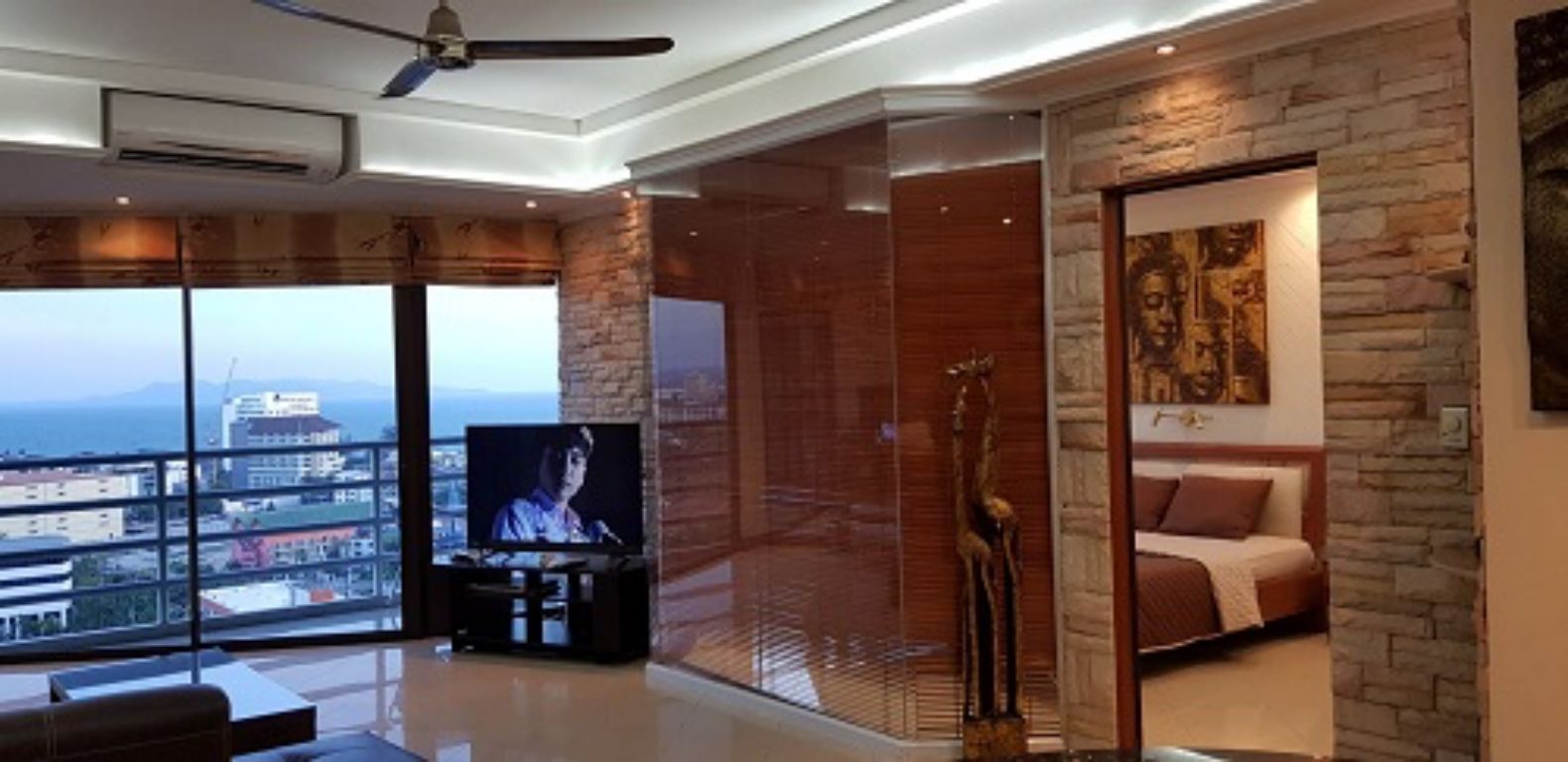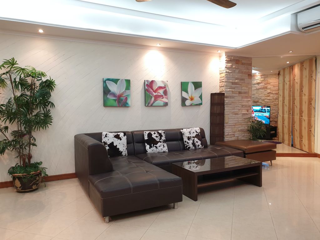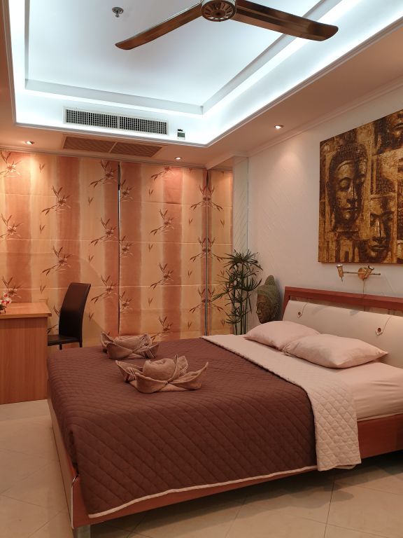 15th Floor One Bedroom Studio, 64 square meters with sea view. Hand made king bed with a western mattress, A nice sitting area with couch,