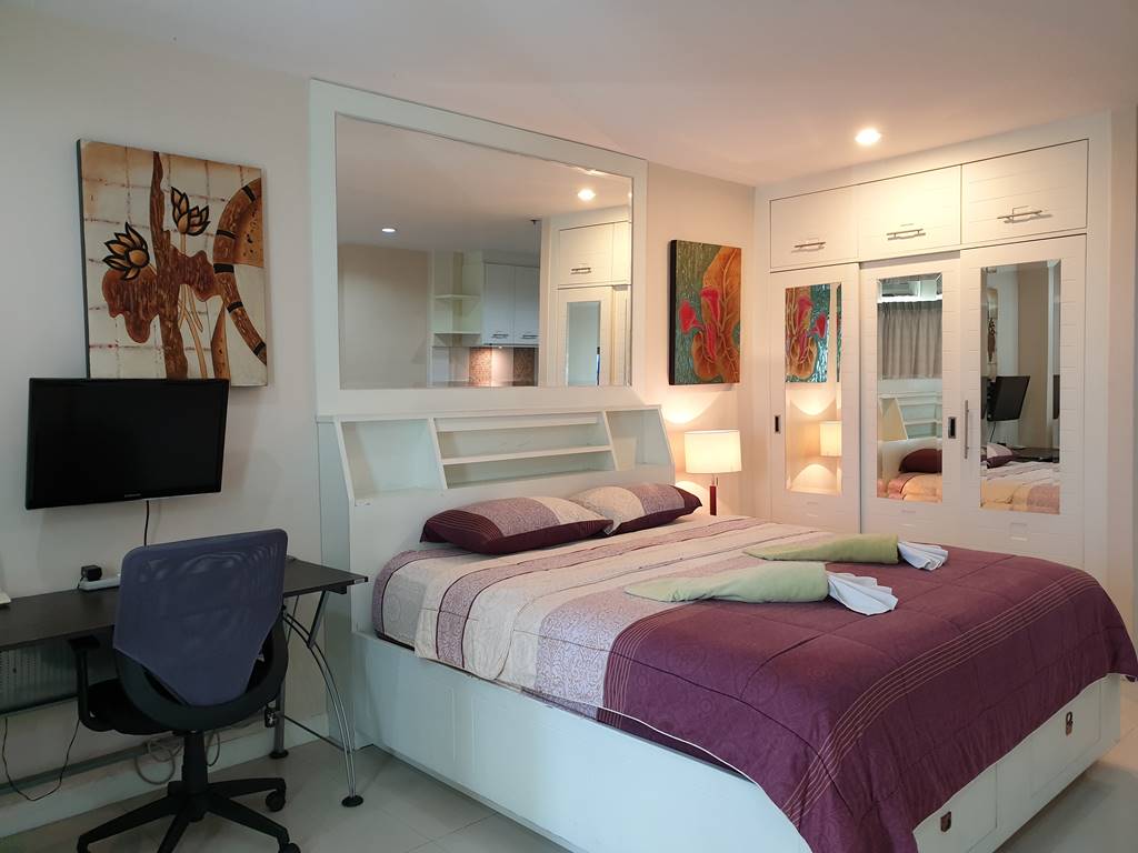 Hand made high rise king bed with blue mood lighting under the bed and a huge wall mirror over looking the bed. Luxury 68,000 baht Slumberland mattress. Sea View looking towards Walking Street. Hand made 2 seat couch & recliner chair, Full Kitchen, ADSL internet with secure Wi_Fi and so much more: THIS ROOM WAS JUST REMODELED WITH ALL THE FURNITURE REFRESHED AS OF 24 MAY 2022